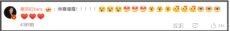 惠英红则简单明了的“恭喜伟霆”,搭配了无数开心欢呼的表情包,能感受到她的热情。