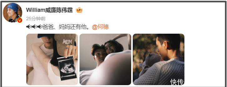陈伟霆、何穗突然一起晒出B超照、孕期照、和儿子的合照官宣当爸当妈迎客松配资,两人的官宣文也甜蜜温馨,统一配文“爸爸、妈妈还有他。”,搭配的抱孩子的照片还是对称版,甜炸了。